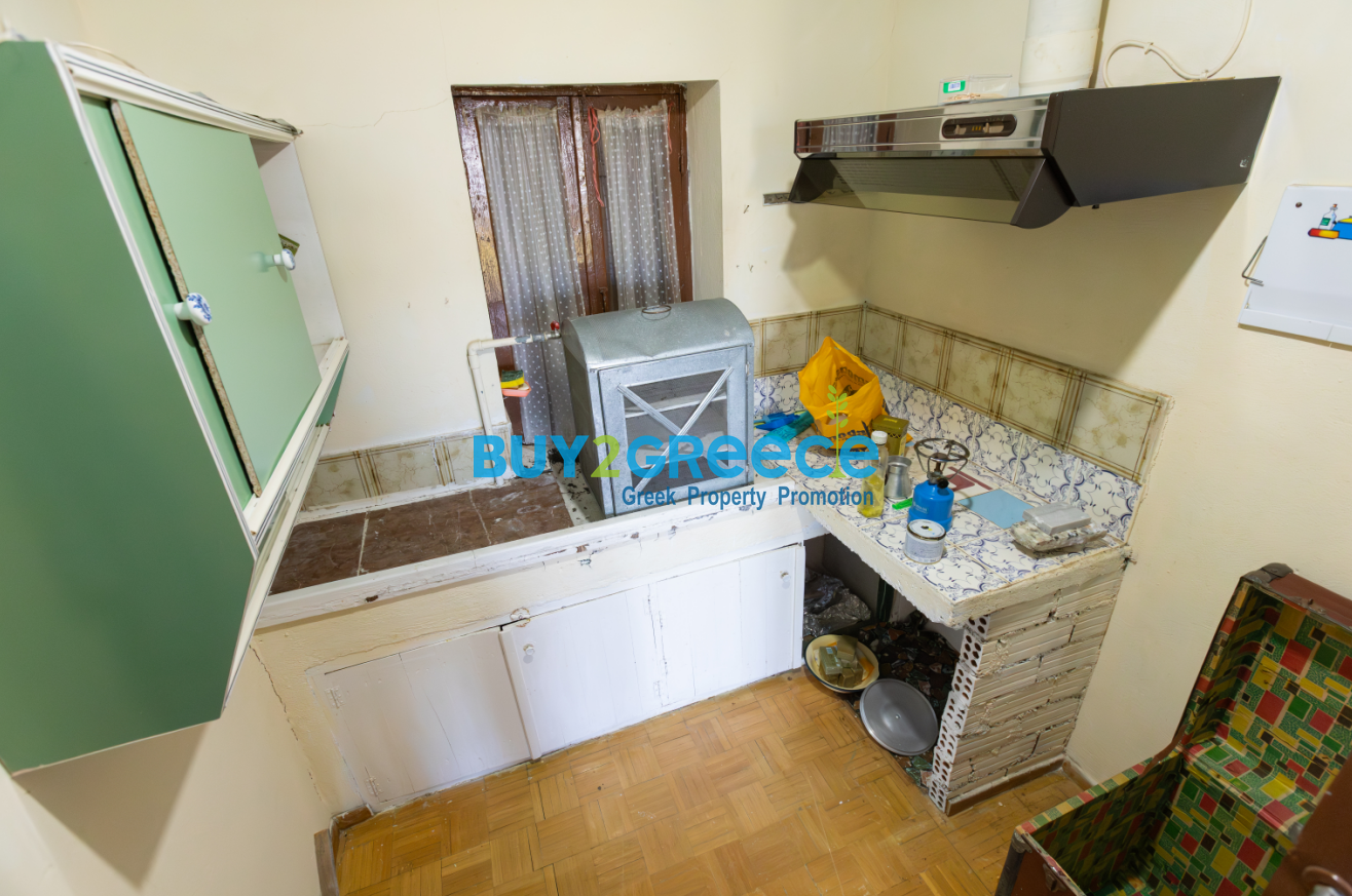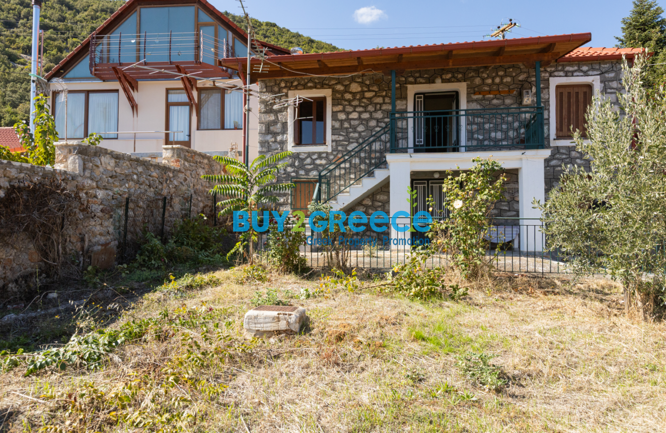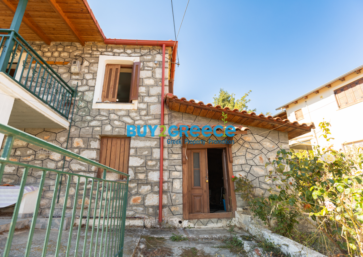 Two-story house located in the quiet area of Gravia – Apostolias, perfect for those seeking peace and tranquility, away from noise and crowds. The property has a total area of 97 sq.m. and sits on a 308 sq.m. plot. It features 2 bedrooms, 1 bathroom, a kitchen, and a living room.